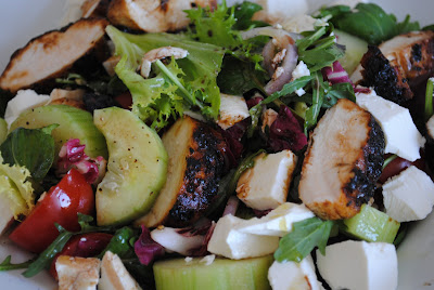 Foråret er kommet og det giver lyst til lette, grønne retter. Salaten her kan bruges når som helst - til frokost, hovedret eller tilbehør. Her har jeg brugt grillet kylling, men det kan sagtens erstattes af andre typer kød eller helt udelades. En græsk salat er per definition lidt rustik, så du skal ikke bruge megen tid på forberedelserne her.